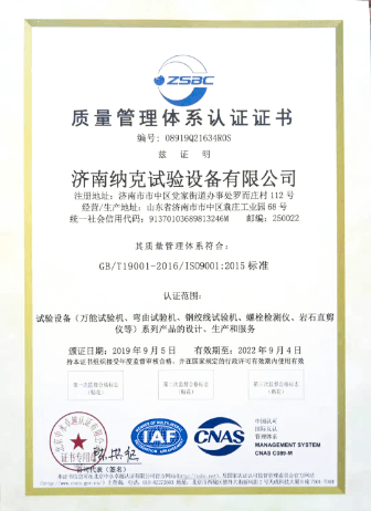 濟南納克試驗設備有限公司是于2009年7月在中華人民共和國境內注冊的一家集研發(fā)、生產、銷售于一體的國家高新技術企業(yè)。公司擁有多名行業(yè)內的優(yōu)秀專家;公司的研發(fā)團隊、營銷團隊和售后服務團隊均由試驗機行業(yè)的精英組成。公司先后獲得近二十多項中國實用新型專利和多個發(fā)明專利,并擁有獨立完善的機械加工車間、產品組裝車間和研發(fā)中心辦公樓。公司具備專業(yè)的服務能力來設計和生產各類通用檢測設備和專用檢測設備。十余年來,公司善于解決用戶在試驗過程中遇到的各種問題,被客戶譽為“解決問題專家”。